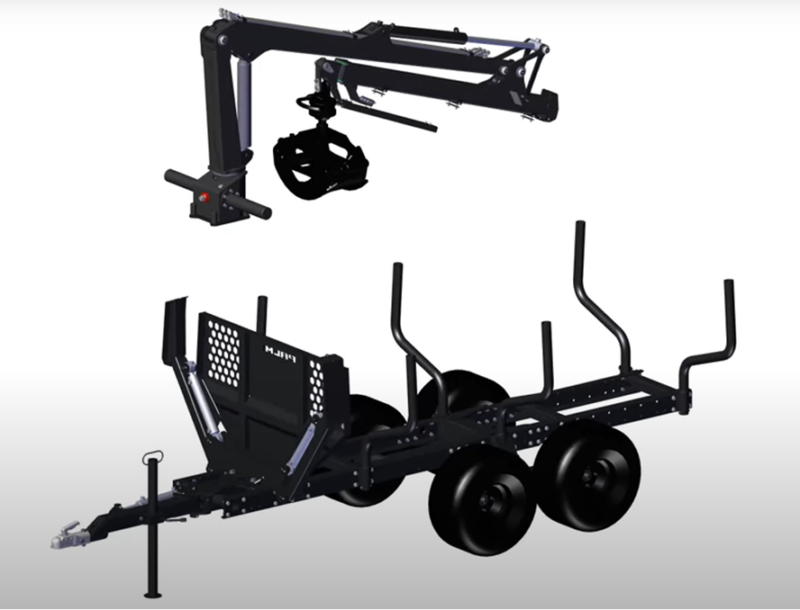 Robuste et polyvalente, la grue et remorque à grumes PALMS saura vous satisfaire.